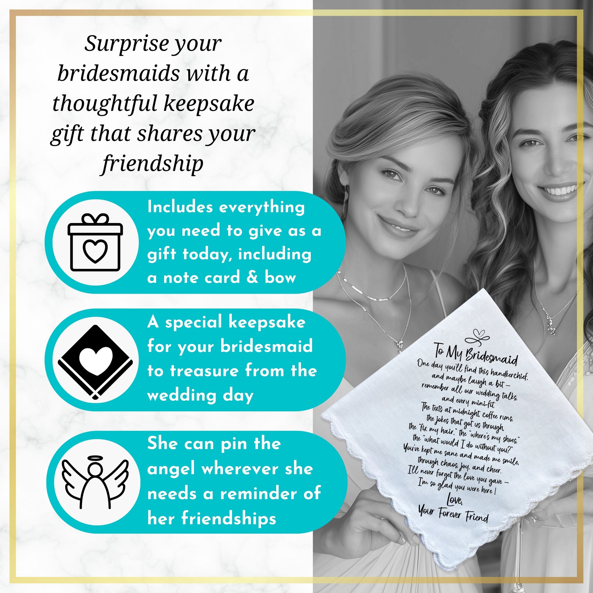 Bridesmaid Handkerchief Wedding Gift from Bride | Thank You Keepsake with Poem for Morning of Letter, Angel Charm, Card, Wax-Sealed Envelope
