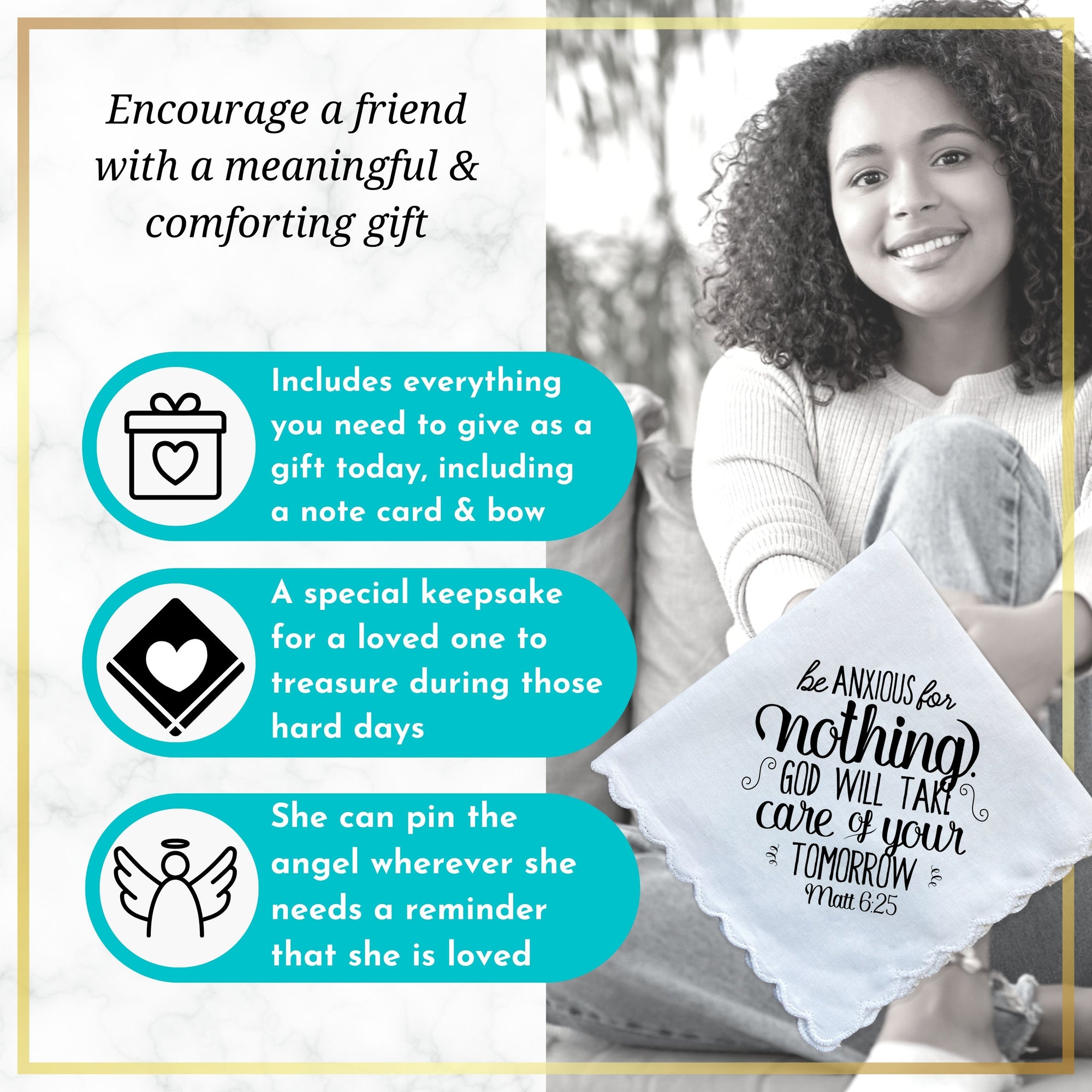 Do Not Be Anxious Thinking of You Handkerchief | Encouragement Christian Bible Support Quote Gift for Friend | Angel Charm, Card, Envelope