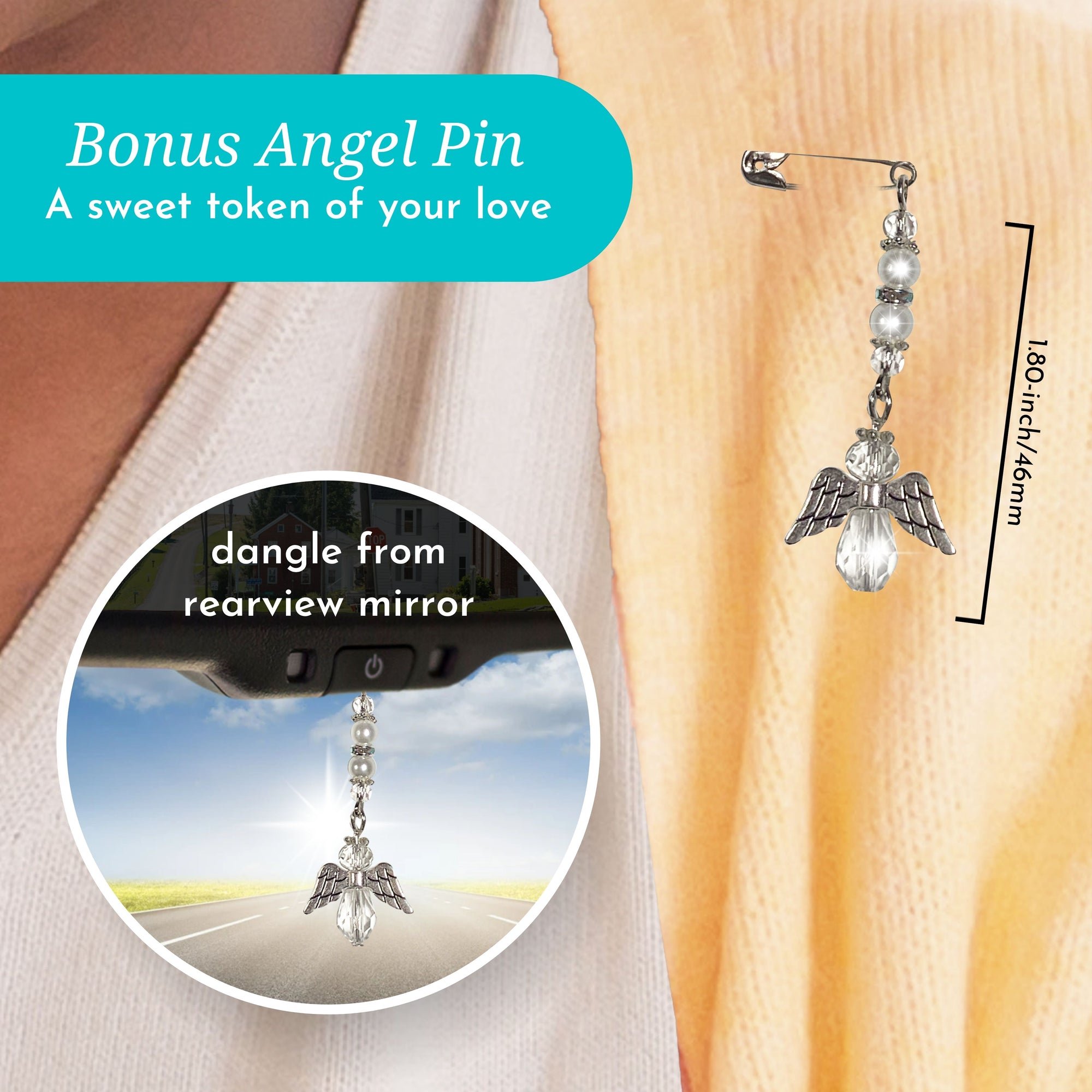 Includes a clear beaded angel charm—a pocket-sized symbol of protection and comfort. A beautiful remembrance for someone who believes in the power of prayer and eternal love.