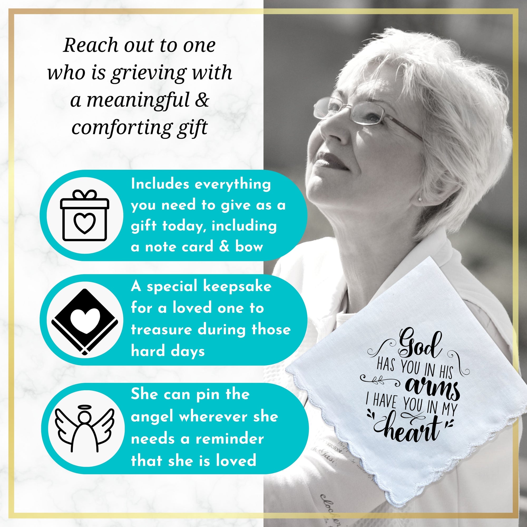 With the comforting quote “God has you in His arms, I have you in my heart,” this bereavement kerchief offers faith, remembrance, and a quiet place for tears. ~~~~~~~~~~~~~~~~~~~~~~~~~~~~~~~~~~~~~~~~