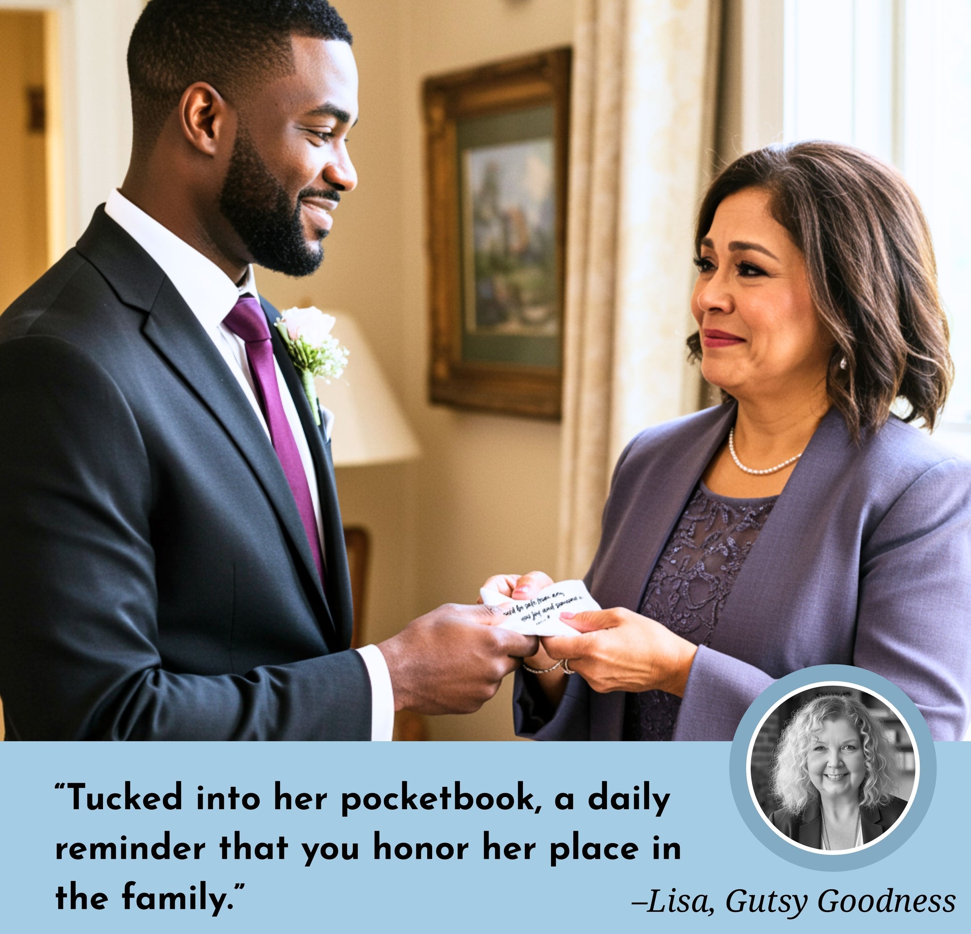 → A son expressing thanks to the bonus mom who’s always been in his corner