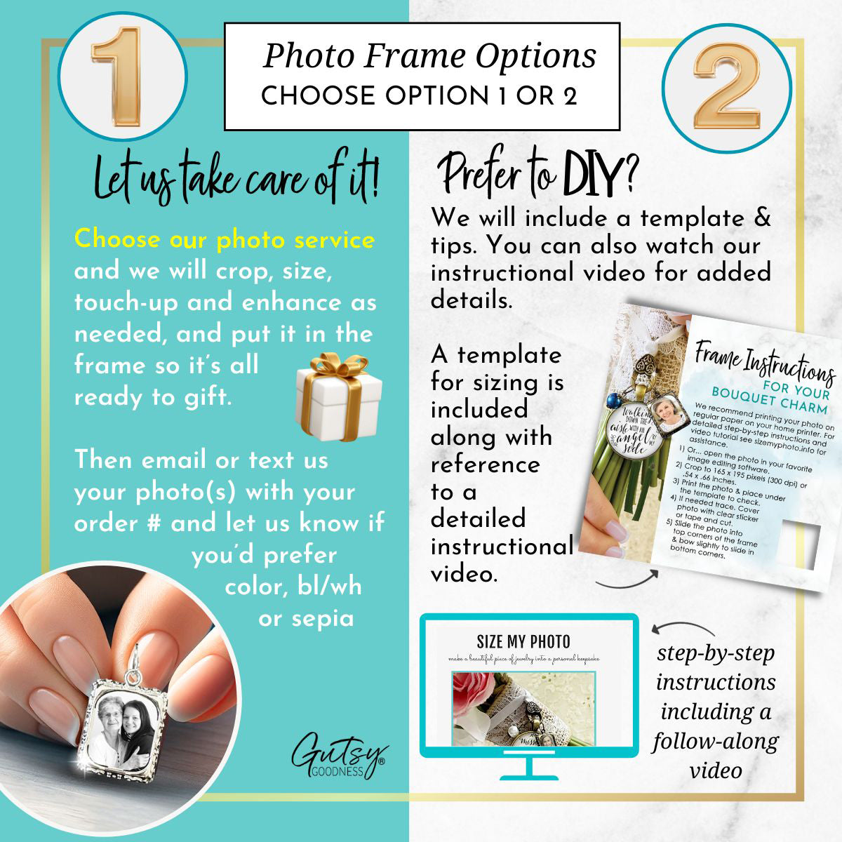 She opens the box and peeks at the card inside that says "You're with me today." "Don't read that yet, just open the bag." She feels a lump in her throat as she gently pulls the bouquet charm out. Her best friend, the one she grew up with smiles back at her from a small frame on the charm. "Oh... it's beautiful."