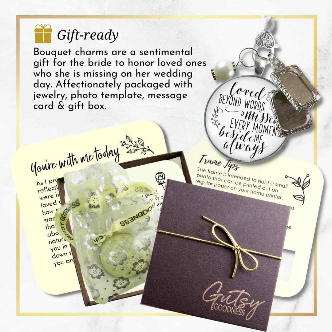 There are a variety of charms that can be added--like angel charms, typewriter charms (we some that say Pop Pop, Nana and more), and even a Keepsake Bouquet Charm Display Hook that can be kept with your wedding album.