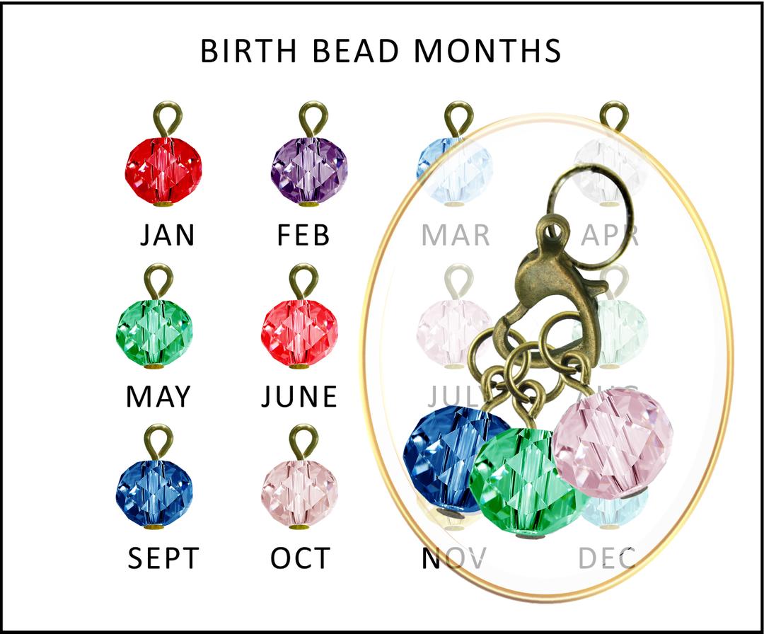Many of our Mothers day necklaces and keychains have an option to add birth month glass beads. Don't see the option on a jewelry piece you've chosen? You can also find them here.